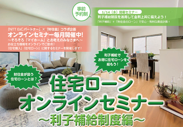 2/10「NTT ExCパートナー」×「財住金」コラボ企画 住宅ローンオンラインセミナー ~利子補給制度編~のコピー