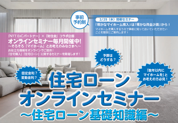 2/25「NTT ExCパートナー」×「財住金」コラボ企画 住宅ローンオンラインセミナー ~住宅ローン基礎知識編~